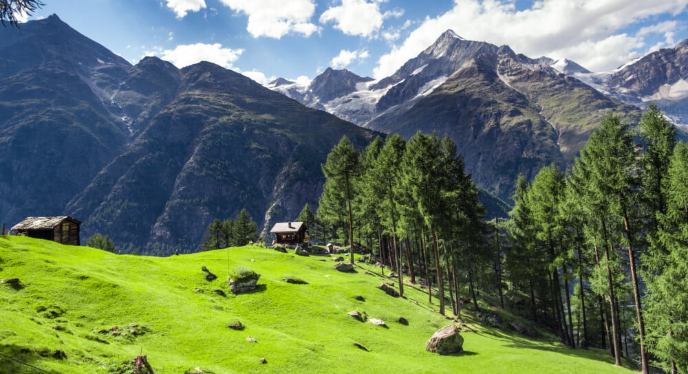 Breng sfeer in je tuin met Hutje in de Zwitserse alpen Tuindoek!